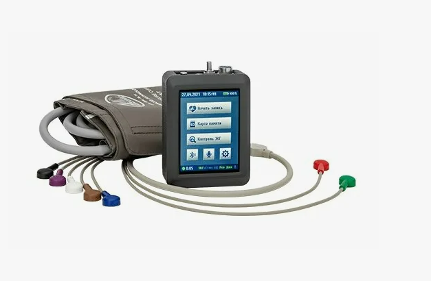 монитор для одновременной регистрации АД и ЭКГ в 2/3/12 отведениях в комплекте с чехлом, манжетой со штуцером и фиксатором, кабелем пациента, флеш-картой, аккумуляторами и зарядным устройством