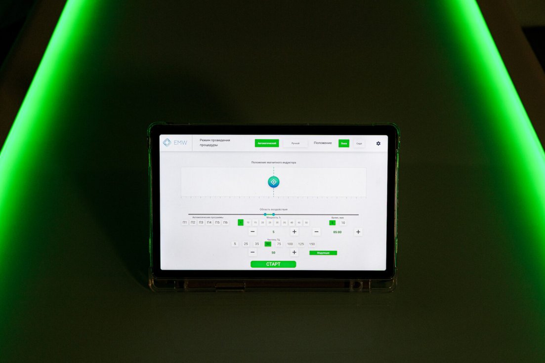 - Регулировка интенсивности (мощности) магнитного поля – от 1 до 400 мТл, регулировка частоты – от 1 до 150 Гц