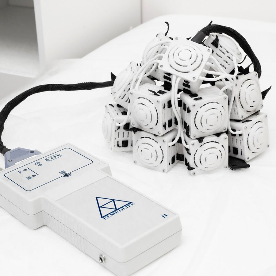 - Тип аппарата – надеваемая на голову пациента шлем-гарнитура, управляемая блоком управления